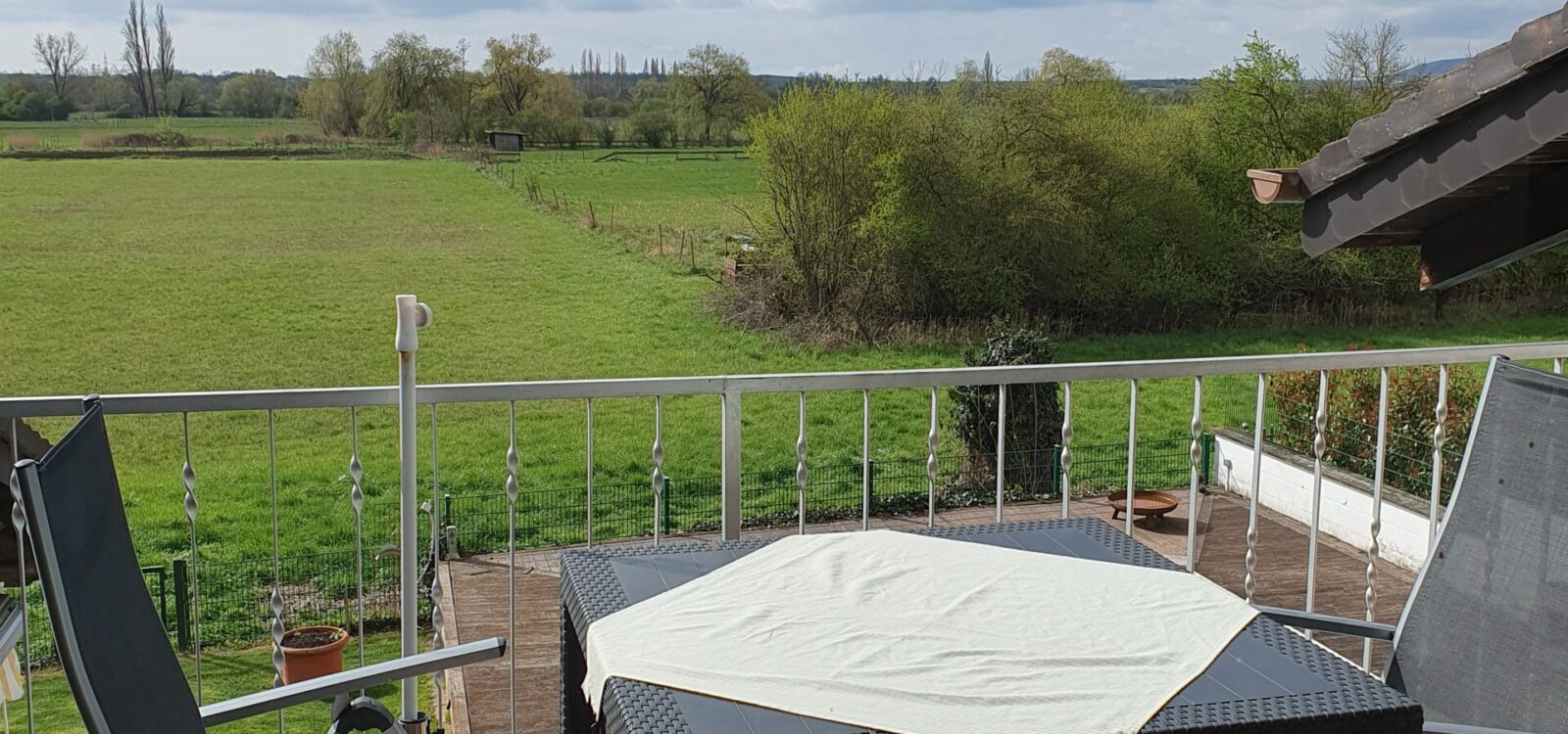 Sie verfügt über einen Südbalkon mit Fernsicht und direktem Blick auf das Dürkheimer Bruch und den etwa 5 km entfernten Haardtrand. Auf der Terrasse finden Sie zwei Liegestühle und weitere Sitzgelegenheiten.